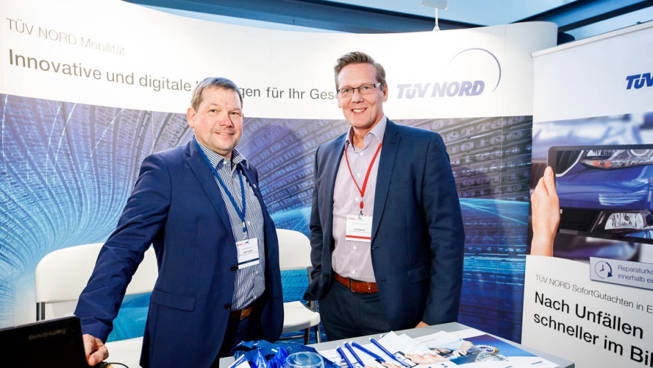 von 30: Bei TÜV NORD stand die Zukunft der Schadenbegutachtung im Fokus: Edgar Jungblut (li.), TÜV NORD SofortGutachten GmbH, und Dirk Helmold, Leiter Zentraler Vertrieb & Marketing TÜV NORD Mobilität.