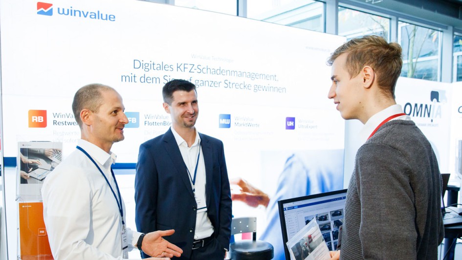 von 30: Ihre Lösungen für digitales Kfz-Schadenmanagement dürfen in Potsdam nicht fehlen: Alexander Kiefel (li.) und Johann Kiefel (Mi.) von winvalue.
