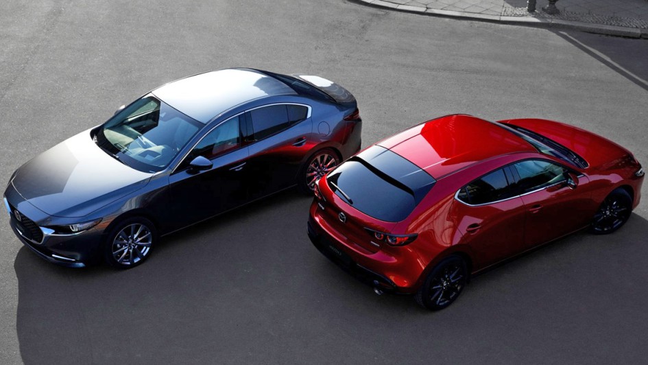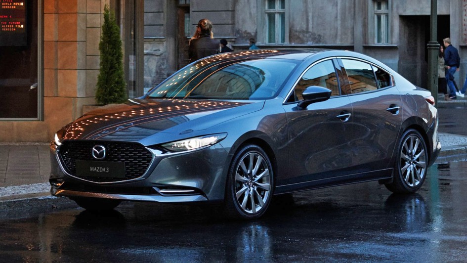 von 10: Die Neuauflage des Mazda3 basiert auf einer neuen Plattform mit Verbundlenkerhinterachse und ist im neuen, reduzierten Mazda-Design gestaltet, das auf sogenannte "Charakterlinien" verzichtet.