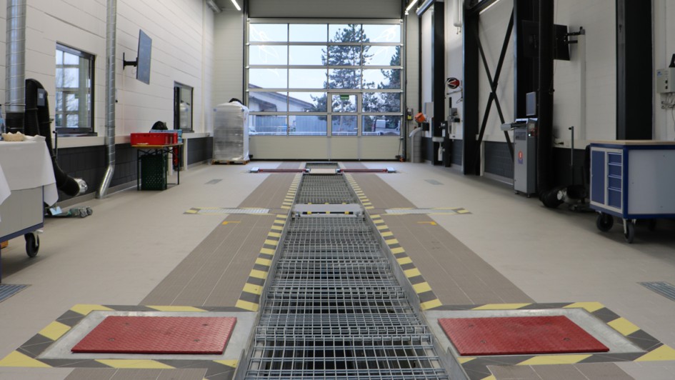 von 5: Zwei Prüfstraßen für Lkw sowie eine für Pkw stehen zur Verfügung. Diese sind jeweils extra breit, um den Ausbildungsklassen genügend Platz für den Unterricht zu bieten.