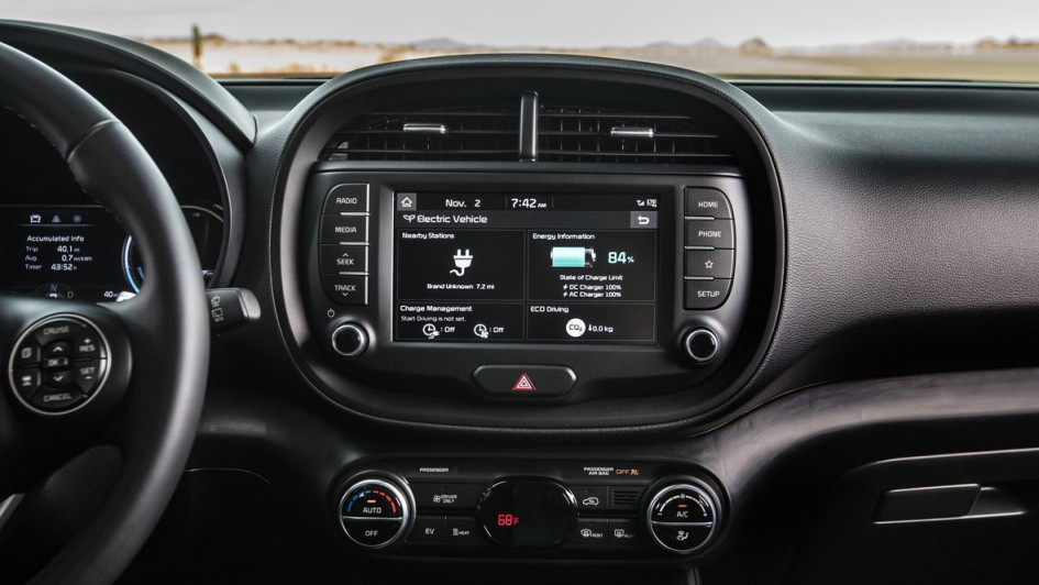 von 14: Außerdem kommt ein neues Telematiksystem namens UVO zum Einsatz, welches den Nutzer unter anderem mit Echtzeitinformationen zu Ladestationen versorgt und es ermöglicht, das Laden zu programmieren. Außerdem beherrscht UVO gängige e-Call-Funktionen.