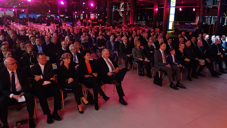 von 23: Ein Blick in die Festversammlung der 300 geladenen Gäste. Vorne li. Dr. Ralf Ross, Opel, Dompfarrer Richard Hentrich, Ministerin Birgit Keller, Gabi Biermann und Helmut Peter. Im rechten Flügel: Andreas, Laurent und Anja Peter, Marc Meiling, Direktor Vertrieb Deutschland, Opel Bank.