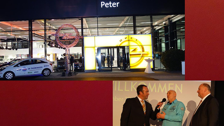 von 23: Helmut Peter begrüßte die 300 geladenen Gäste, voran die Ministerin für Infrastruktur und Landwirtschaft des Freistaates Thüringen, Birgit Keller und ließ in seinen Ausführungen acht Monate Bauzeit mit mancher Anekdote aufleben. 3,7 Millionen Euro beträgt das Investment für den reinen Opel-Betrieb. 300.000 Euro wurden für die im Hintergrund des Grundstücks stehende Multifunktionshalle aufgewendet. Die Marke Opel ist mit seinen sechs Standorten in der Petergruppe inzwischen zweitstärkster Umsatzträger. In den 13 Jahren gemeinsamen Zusammenwirkens gab es, so Helmut Peter, allerdings beim "Umparken im Kopf" einige Beulen. Peter arbeitete dabei deutlich die Verluste aus 700 Diesel-Rückläufern im Flottengeschäft heraus. Peter: "Opel lässt uns bei den Gebrauchtwagen im Regen stehen."