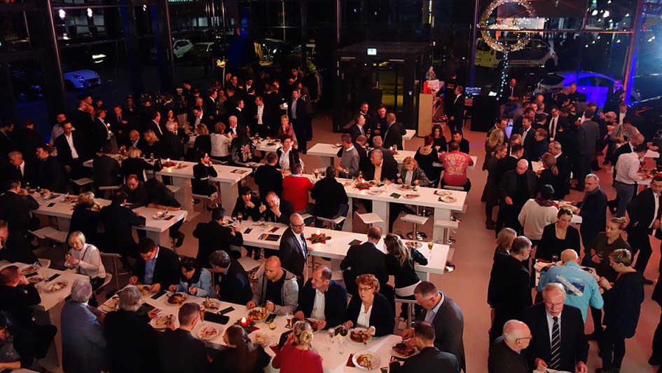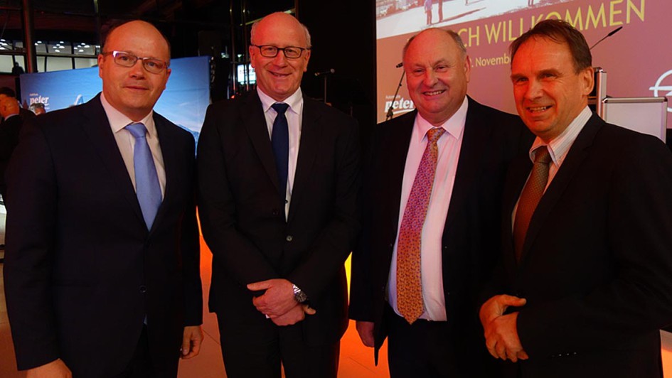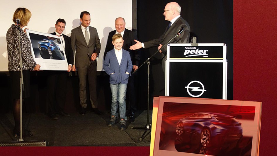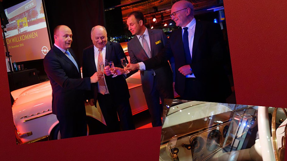 von 23: Die komplette Opel-Crew wurde angeführt von Dr. Ralf Ross, Direktor Finanz in Deutschland (2.v.re). Er kündigte nicht nur zahlreiche neue Modelle an, sondern betonte die Fortführung für den Opel-Produktionsstandort Eisenach und gab sich guter Dinge, den Turn-around im "roten Meer" zu Rüsselsheim nach 17 Jahren geschafft zu haben. Ross an die Peter-Gruppe gerichtet: "Wir sind stolz, dass wir sie haben! Da gehört viel Mut dazu, eine Verantwortung in dieser Dimension zu stemmen." Die hohe Kundenzufriedenheit im Hause Peter führt auch seit drei Jahren zur "Quasi-Mitgliedschaft" im Opel-Champions-Club.
