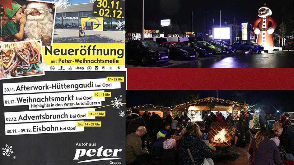 Andreas Peter, seit 2005 im elterlichen Autohaus und als Geschäftsführer dominant in der Gruppe mit Vertrieb beschäftigt, ließ in seiner Rede gewichtige Erinnerungen aus den letzten 13 Jahren aufleben, als er exakt am heutigen Standort damals zum 1. Advent in der Gärtnerei Boer ein Adventsgesteck kaufte. Er stellte die Überlegungen zur räumlichen Exklusivität und Erweiterung für Opel dar. Das reichte vom "Grünen Autohaus" bis zur neuen Portalwaschanlage und der Multifunktionshalle. Das Motto der Peter-Gruppe sitzt: "Die Zukunft gehört allen!" Abschließend führte der „ junge Peter“ in das adventliche Peter-Eröffnungswochenende ein.