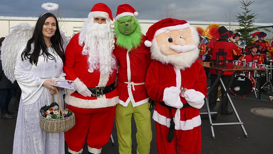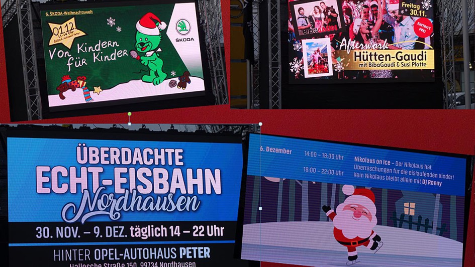 von 23: Die originelle Ankündigung des Peter-Weihnachtsmarktes, mit bestrahltem, überdimensioniertem Weihnachtsmann. Ein separater Bereich mit klassischem Adventszauber, Glühwein und Feuer wurde aufgebaut.