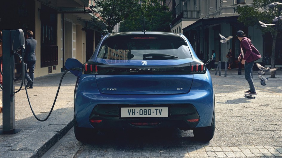 von 10: Peugeot e-208: Nur wer genau hinschaut, entdeckt, dass der Kühlergrill hier in Wagenfarbe lackiert ist und das Löwen-Logo je nach Blickwinkel die Farbe ändert.