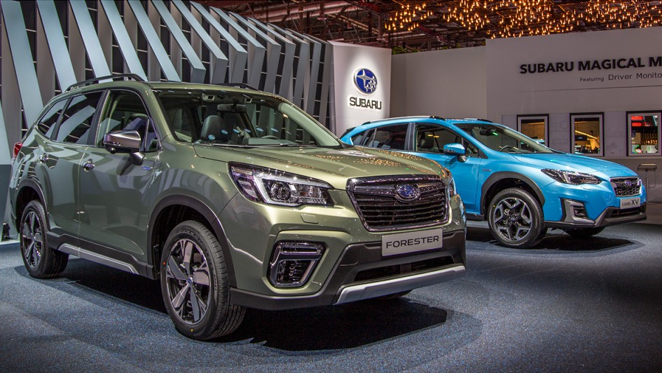 Europapremiere: Die fünfte Generation des Forester (l.) zeigt sich deutlich dynamischer und sportlicher. Die Frontpartie und die höhere Gürtellinie verstärken diesen Effekt.