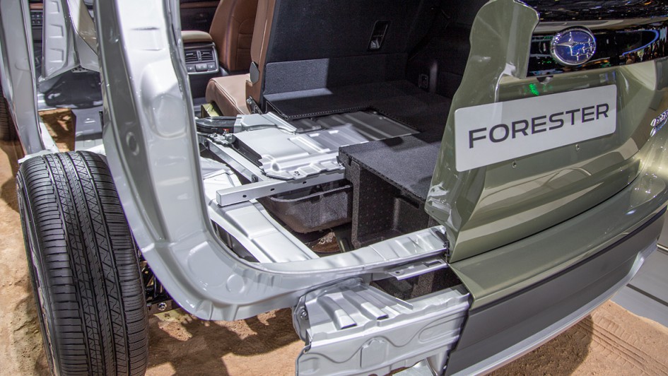 Sowohl beim neuen Forester als auch beim Update für den XV wurde viel Wert darauf gelegt, dass das Hybridsystem das Kofferraumvolumen nicht schmälert: Die Unterbringung der Hybridkomponenten in einem speziellen Sicherheitskäfig unter dem Kofferraum sorgt dafür, dass das Ladevolumen nahezu vollständig erhalten bleibt.