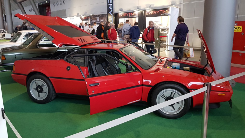 von 21: BMW präsentierte sich auf der Retro Classics mit einer eigenen Sonderausstellung. Hier durfte ein Auto nicht fehlen: der BMW M1. In den letzten Jahren haben die Preise für den auf 399 Stück limitierten Straßenrennwagen kräftig angezogen. Und wenn es sich - wie in diesem Fall - laut Verkäufer um ein Fahrzeug "in einem absolut neuwertigen Original-Zustand" mit nur 13.394 Kilometern Laufleistung handelt, dann werden auch mal schlappe 825.000 Euro aufgerufen.