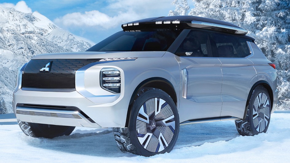 von 9: Die Mitsubishi-Designer haben ein wuchtiges SUV gezeichnet - mit hoher, langgestreckter Motorhaube inklusive des Dynamic-Shield-Kühlergrills und flacher Windschutzscheibe.