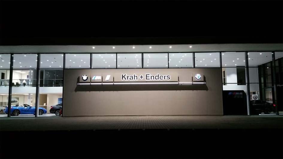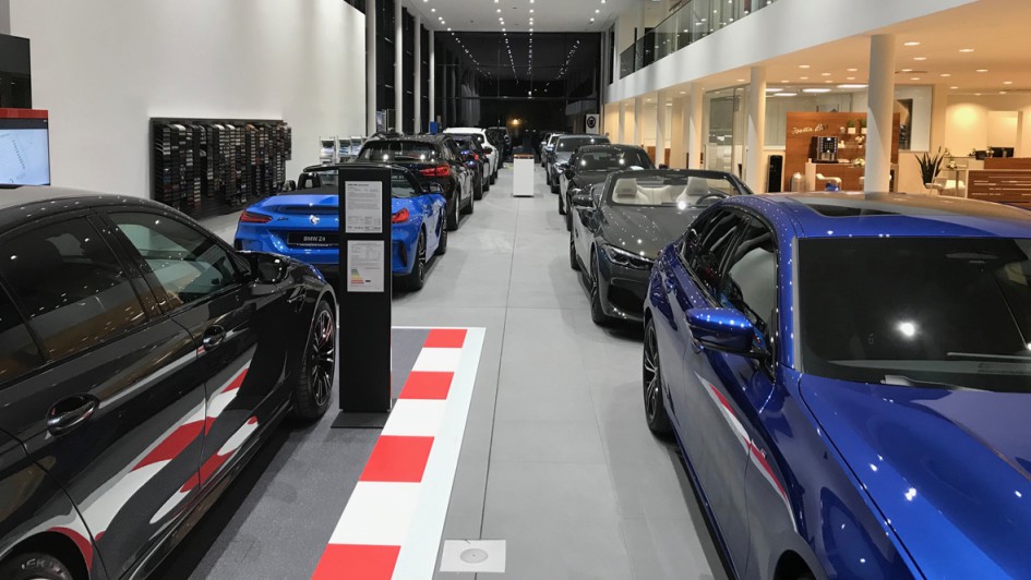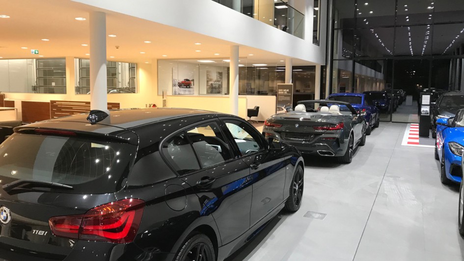 von 13: Das neue Autohaus bietet den Kunden circa 6.000 Quadratmeter zugängliche Fläche. Der Showroom mit bodentiefen Glasfronten will durch seine lichtdurchflutete Optik beeindrucken.