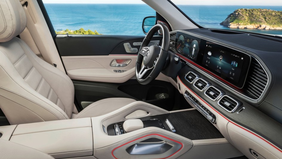 von 11: Wie die A-Klasse setzt auch das neue Groß-SUV auf das MBUX-Infotainmentsystem. Ein 12,3-Zoll-Display dient als digitales Kombiinstrument, daneben gibt’s einen weiteren, gleichgroßen Touch-Bildschirm.