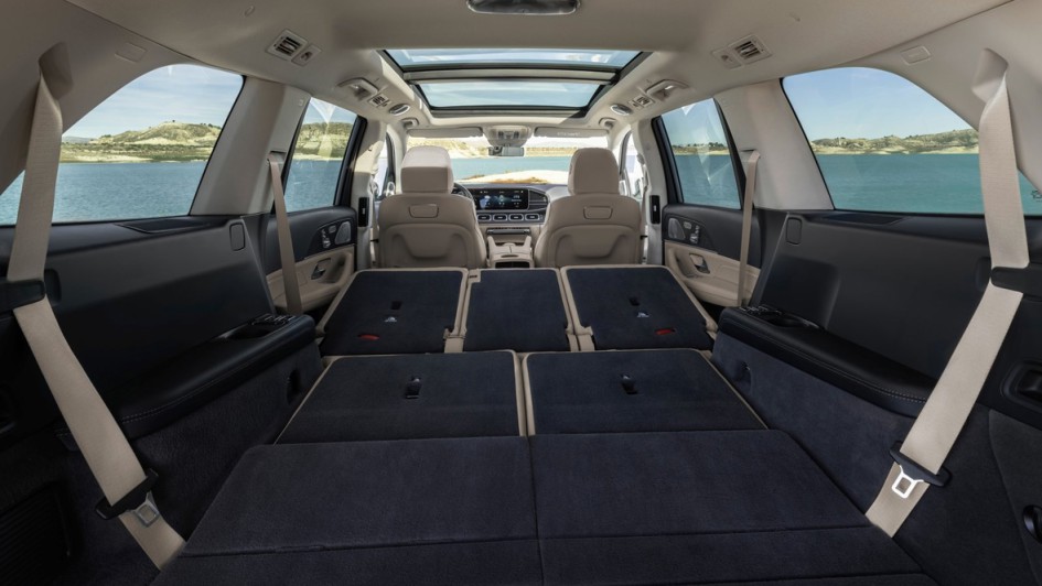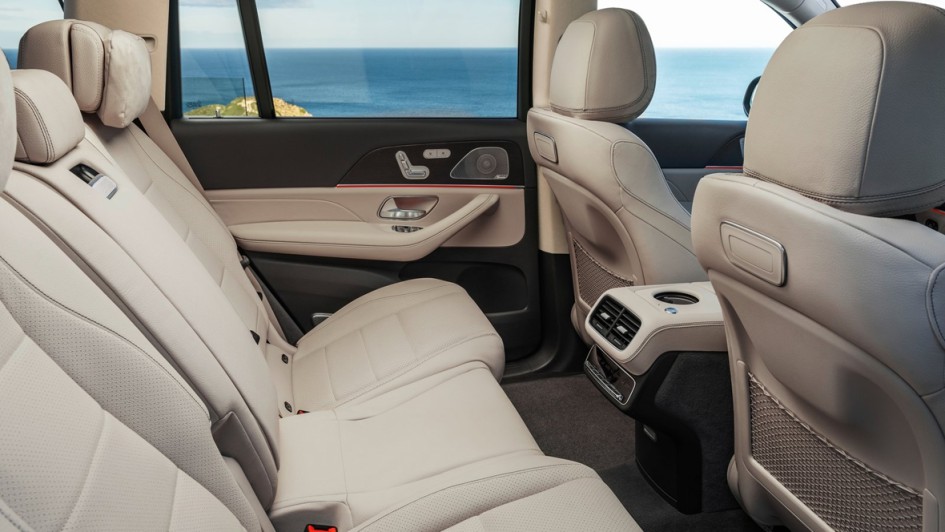 von 11: Serienmäßig gibt es in Europa für die zweite Reihe eine elektrisch verstellbare Rückbank mit dreifach geteilter Lehne, auf Wunsch ist auch die in den USA als Standard-Konfiguration ausgelieferte Einzelsitzanlage mit zwei bequemen Sesseln zu haben. Ganz hinten dürfen Personen bis 1,94 Meter Körpergröße reisen, für die wird es aber selbst in einem Koloss wie dem GLS recht eng.