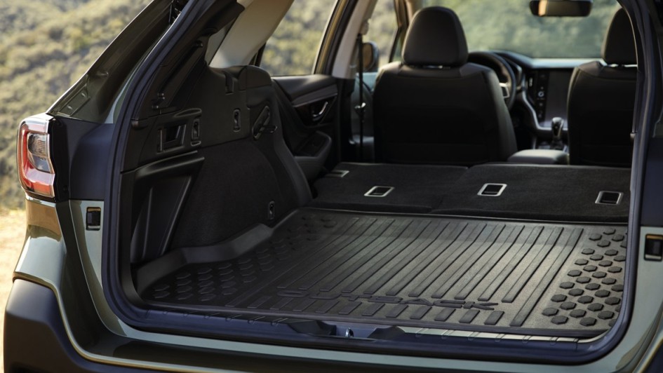 von 8: Dank einer breiteren Heckklappe soll auch das Einladen von Gepäck leichter von statten gehen; optional öffnet die Klappe auch per Handwedler vor dem Subaru-Emblem. Auf den mittlerweile klassischen Fußschwenk unter der Heckschürze reagiert sie dagegen nicht. Im Kofferraum verschwinden, wenn die Sitze in Reihe zwei flachgelegt sind, gut 2.000 Liter Gepäck, die maximale Ladelänge gibt Subaru mit knapp zwei Metern an.