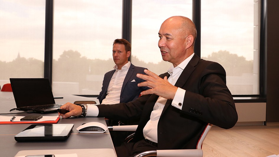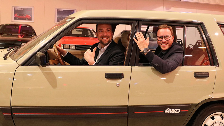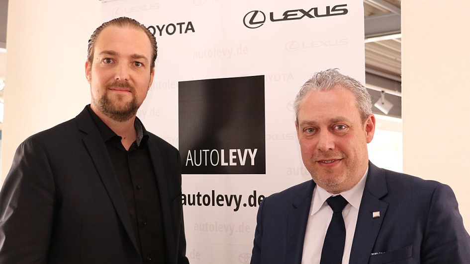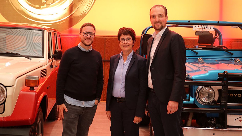 von 29: Freundlicher Empfang in der Toyota Collection: Anke Temming, General Managerin Händlerentwicklung bei Toyota Deutschland, mit Philipp Kroschke (links) vom Sponsor Kroschke Gruppe und Patrick Neumann (rechts) von AUTOHAUS.