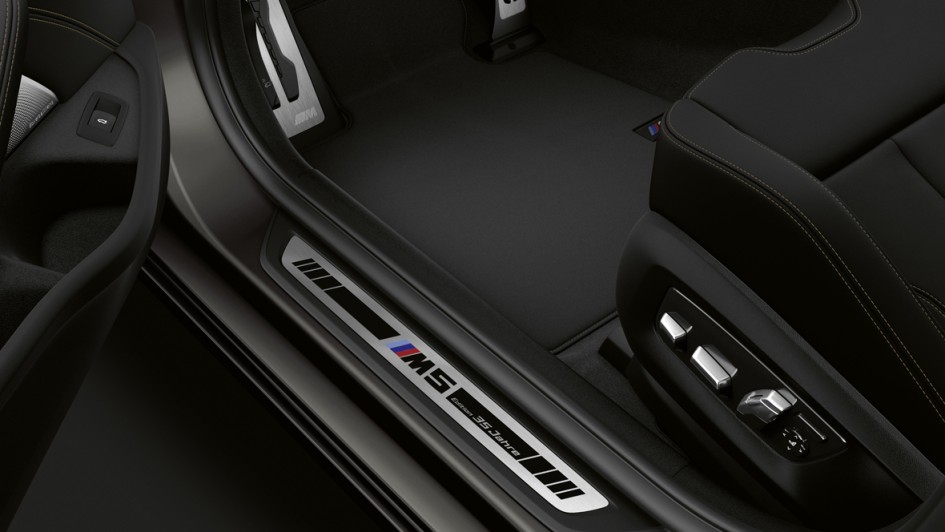 von 8: Anlass für die ab Juli verfügbare Kleinserie ist das 35. Jubiläum des Business-Boliden M5. Zu den Besonderheiten außen gehören die Metallic-Lackierung Frozen Dark Grey sowie spezielle 20-Zoll-Räder.