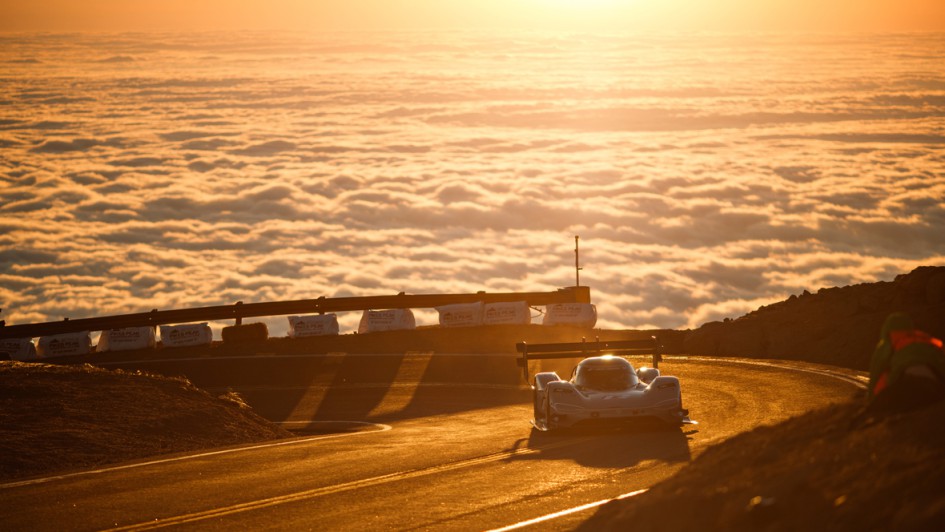 von 6: Mit dem elektrisch angetriebenen Rennwagen "ID.R" hat VW 2018 beim "Pikes Peak"-Bergrennen in den USA (Bild) und beim "Festival of Speed" im britischen Goodwood neue Bestzeiten setzen können.