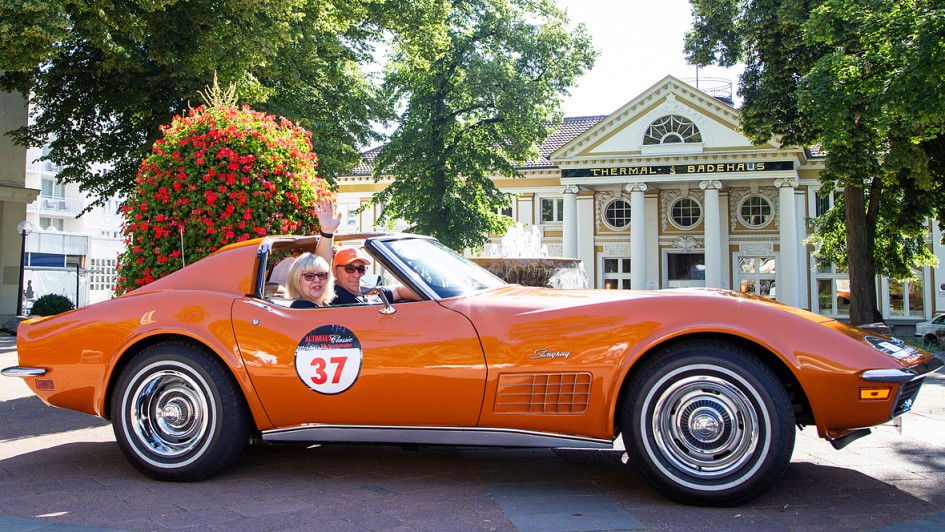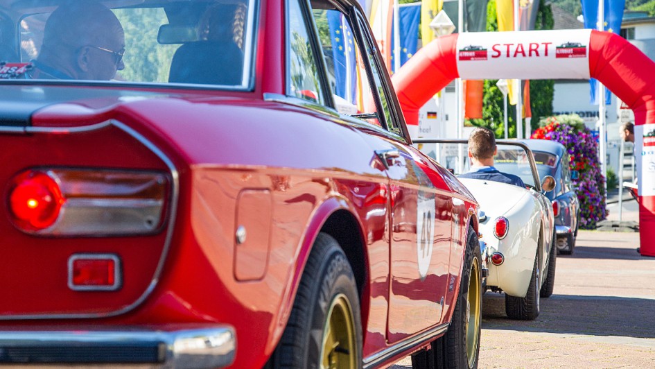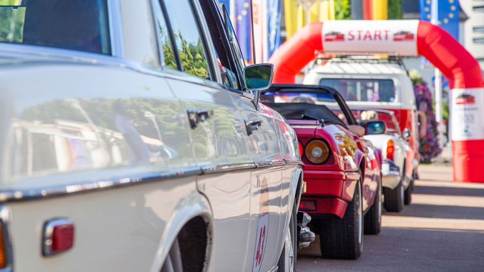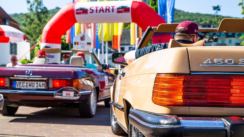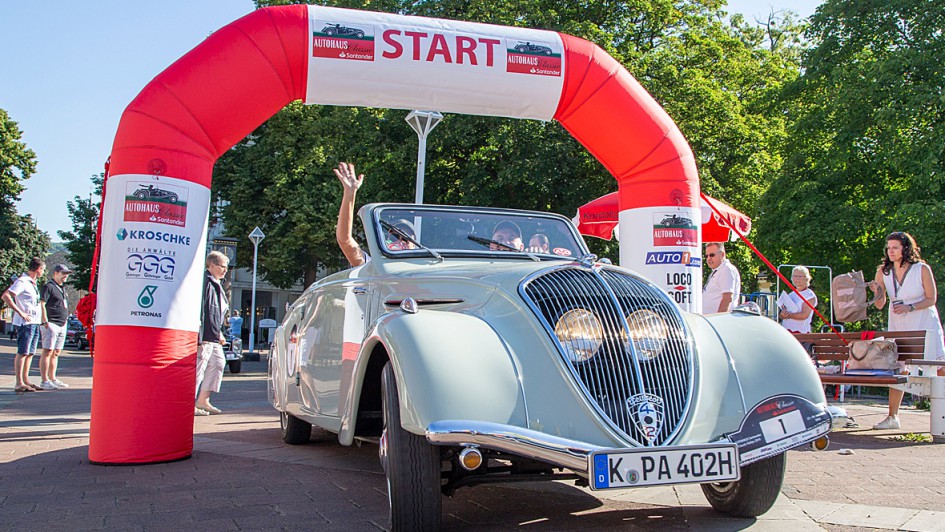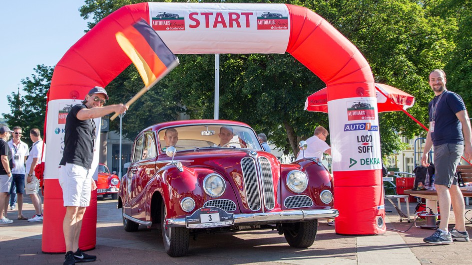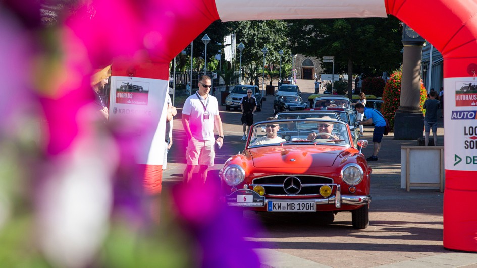 Start der 12. AUTOHAUS Santander Classic-Rallye: Bei strahlendem Sonnenschein sind heute 86 Teams in Bad Neuenahr auf die Strecke gegangen.