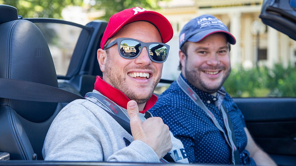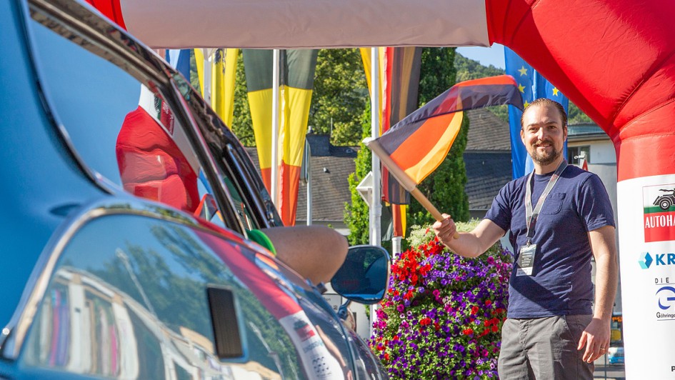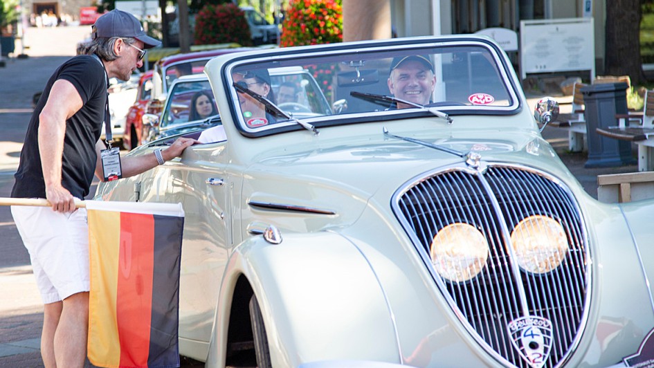 von 25: Ein kurzer Blick auf die Digitaluhr und eine letzte Absprache zu den Verantwortlichkeiten an Bord – schon stürzten sich die Autoklassiker ins Rallye-Abenteuer.
