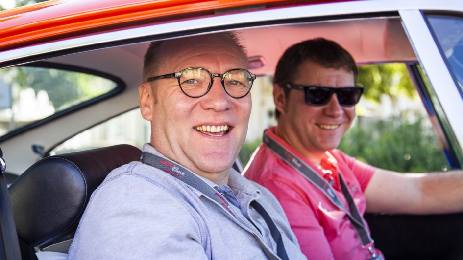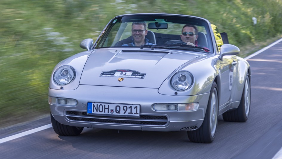 von 17: Den zweiten Porsche der Baureihe 993 - ein Cabrio - fuhren Heiko Peters, Autohaus Peters, und Frank Berger, Karosserie Fachbetrieb Berger.