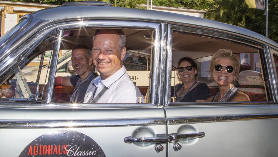 von 17: So ein BMW 502, Baujahr 1961, bietet auch in der zweiten Reihe noch genügend Platz. So wurden Thomas Timmermanns (am Steuer) und Kay Röhl, Autohaus Timmermanns, von ihren Ehefrauen begleitet.