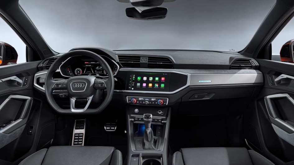 von 13: Ansonsten hat sich gegenüber dem Q3 nicht viel geändert: Es gibt zwei unterschiedlich große digitale Cockpits (10,25 Zoll sind Serie, optional erstreckt sich das Display auf 12,3 Zoll und bietet verschiedene Anzeigemodi) und in der Mittelkonsole sitzt das mittlerweile wohl bekannte MMI-Touch-System mit ebenfalls gut zehn Zoll großem Bildschirm.