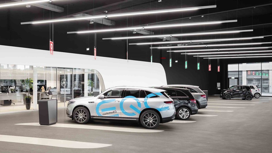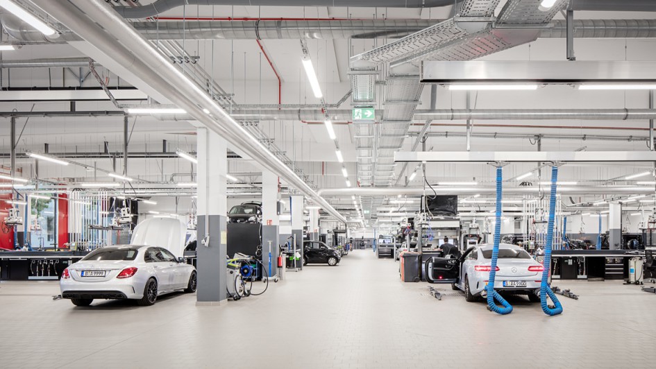 von 5: Kernstück der neuen Werkstatt ist das Service-Lane Konzept. Durch ein visuelles Leitsystem mit LED-Technik werden die Kunden zu einem reservierten Stellplatz im Terminal geleitet und vom Serviceberater in Empfang genommen.
