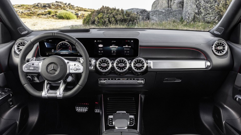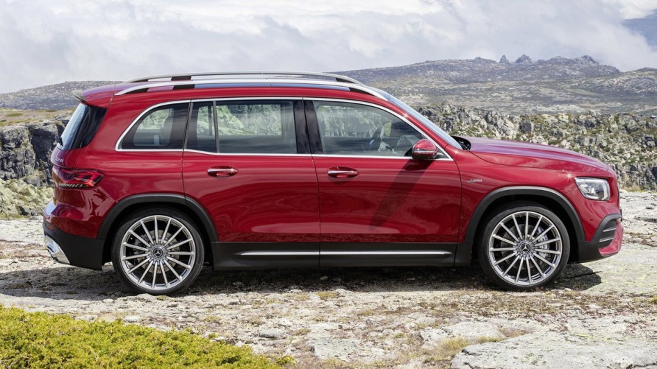 von 10: Wie schon bei CLA 35 und A35 kommt auch im GLB ein Zweiliter-Vierzylinderbenziner zum Einsatz, der 225 kW/306 PS und 400 Newtonmeter Drehmoment zur Verfügung stellt.