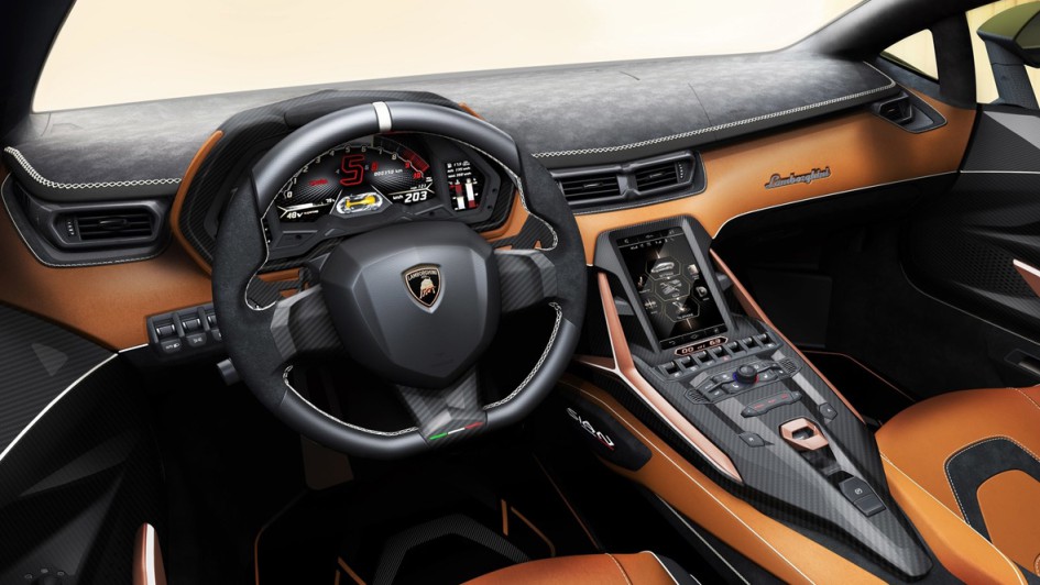 von 10: Das mit 602 kW/819 PS bisher stärkste Serienfahrzeug der italienischen VW-Tochter verfügt neben einem 6,5 Liter großen V12-Benziner über einen 48-Volt-Elektromotor im Getriebegehäuse.