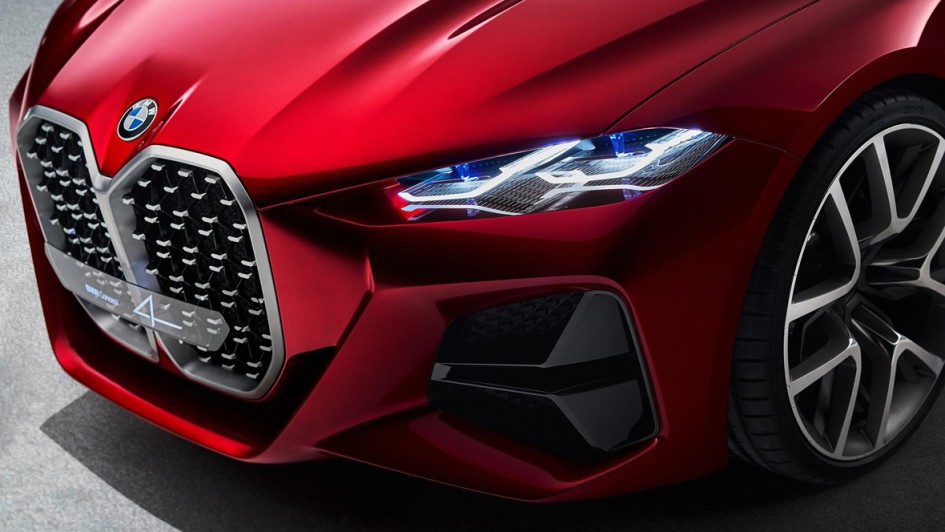 von 9: BMW folgt auch beim BMW Concept 4 dem Trend hin zur größeren Niere. In der Fangemeinde der Münchner sind die XXL-Nieren durchaus umstritten. Mit Spannung bleibt abzuwarten, wie das 4er Coupé im Serientrimm aussehen wird.
