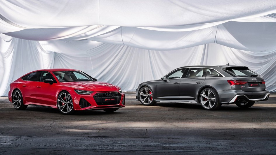von 12: Technisch baut der RS7 auf der C8-Generation des Audi A6 auf und deckt sich somit weitestgehend mit dem Antriebspaket des RS 6 Avant (r.).