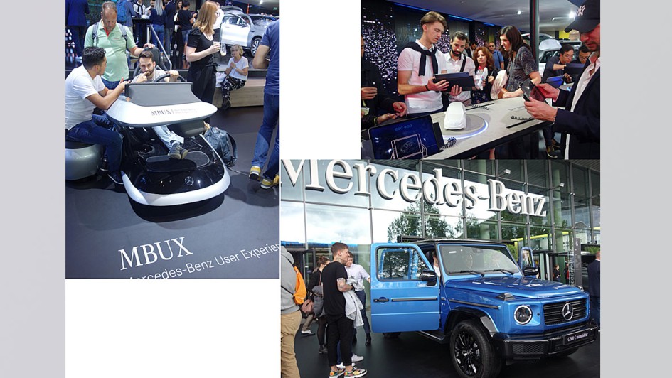 von 46: Man beobachte die "Jugend", die anscheinend so wenig Interesse am Auto hat. Hier am Giga-Geländewagen sowie der Mercedes-Benz User Experience-Station (MBUX). Derartige Bilder in einschlägigen Tageszeitungen wären wichtiger als Fotos sitzender Demonstranten.