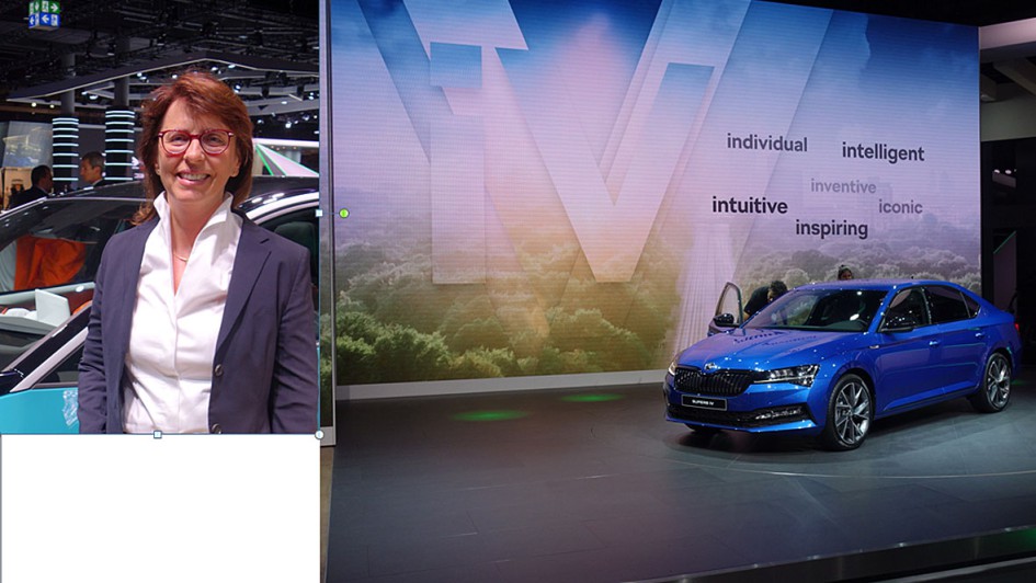 von 46: Skoda präsentierte das neue Make-up des Superb. Mit dem Kamiq findet eine Erweiterung des SUV-Angebots nach unten statt. Vor dem Skoda-Stand trafen wir die frühere Skoda Deutschland-Chefin, Imelda Labbé, heute im VW-Konzern weltweit für das After-Sales-Geschäft verantwortlich. Wir unterhielten uns über das digitale Service-Konzept des Hauses, das von ihr neulich konzeptionell vorgestellt wurde.