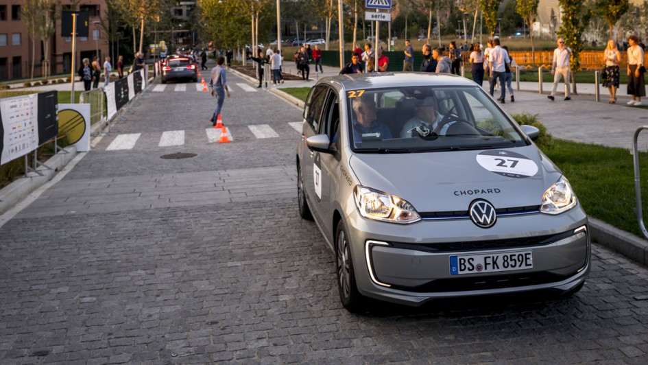 von 4: Hätte dieser VW e-up keine Startnummer getragen, er wäre wohl keinem aufgefallen. Die "Mille Miglia Green" zelebriert Understatement, für die große Show ist das Original zuständig.