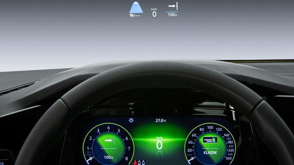 von 24: Das Licht sowie die Heizung der Front- und Heckscheibe werden über ein hoch angeordnetes, digitales Tastenfeld links vom Lenkrad bedient.