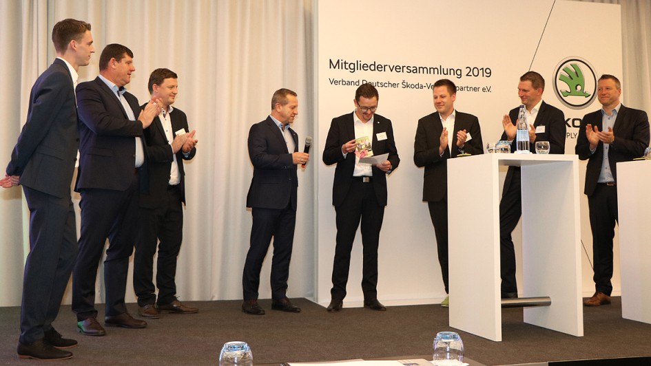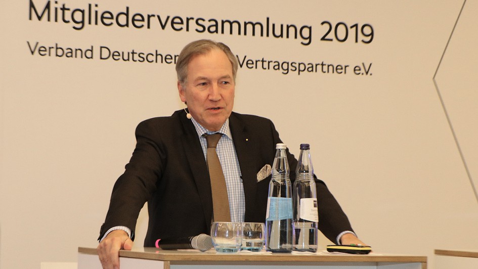von 10: Dirk Weddigen von Knapp, Vorsitzender Volkswagen und Audi Händlerverband, sprach sich in einem Grußwort für eine engere Zusammenarbeit zwischen den verschiedenen Händlerverbänden des VW-Konzerns aus.