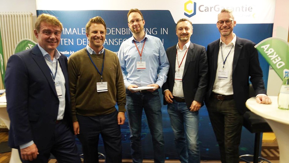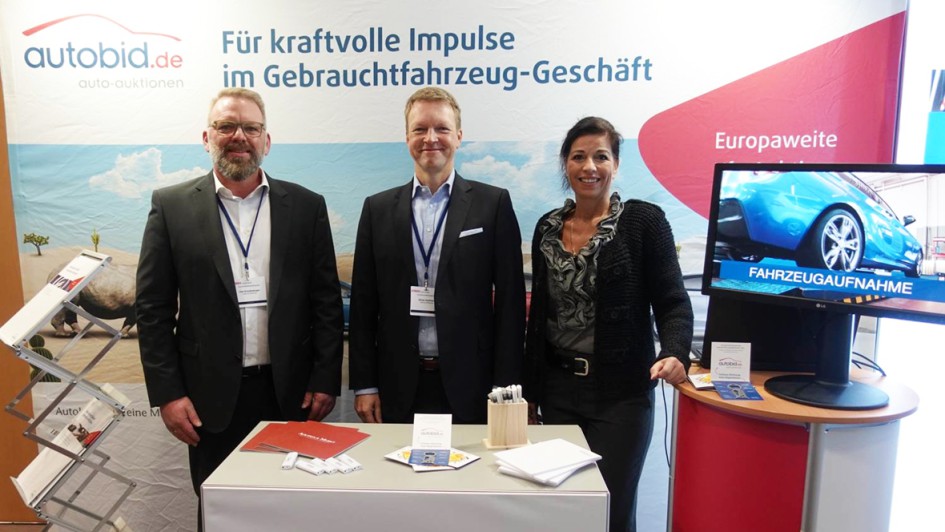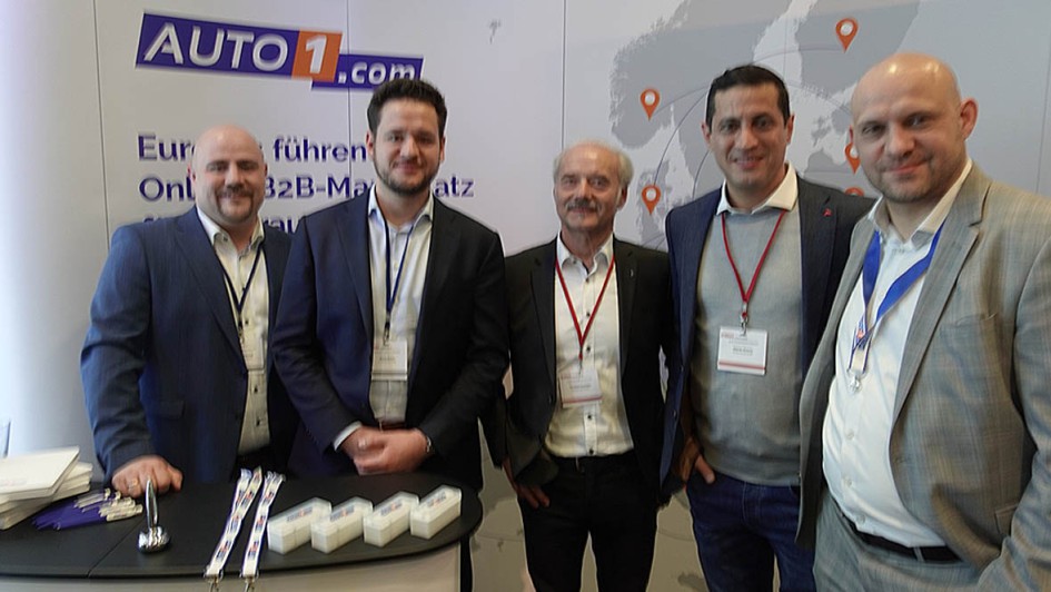von 32: Hohe Präsenz auf dem Messestand von Auto1.com. Dennis Schmidt, Key Account Manager Remarketing (re), Dincer Kumru, Head of Sales, Citroen-/Subaru-Händler Christian Pawletta, Denia Belan, Leiter Remarketing Deutschland, und Oliver Kosan, Leiter Key Account Management Remarketing.