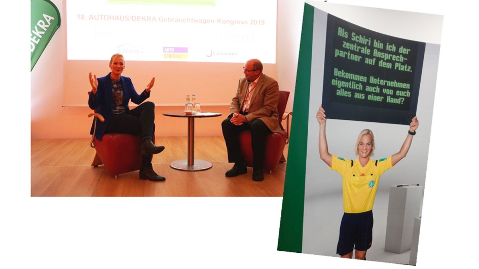 von 32: ... In Sachen Videobeweis machte Bibiane Steinhaus deutlich, dass der Videoassistent grundsätzlich nur in vier Situationen eingreifen kann. Die letzte Entscheidung trifft immer der leitende Schiedsrichter. Mittwochs werden die Spiele für den Einsatz zugeteilt. Ab da beginnt für sie die Vor-, dann aber auch die Nachbearbeitung. Jeder Bundesligaschiedsrichter erhält montags vom DFB ein Spielprotokoll mit seinen individuellen Leistungsdaten. Bibiane Steinhaus, da waren sich alle einig, war nicht nur eine vorbildhafte Vertreterin für den Fußball, man wird sie in Zukunft noch in erweiterten Funktionen nach oben erfahren dürfen. AUTOHAUS-Herausgeber Prof. Hannes Brachat stellte die Fragen. Natürlich als Schwabe auch zur Gage. Bibi Steinhaus wusste auch hier mit großer Contenance zu antworten.