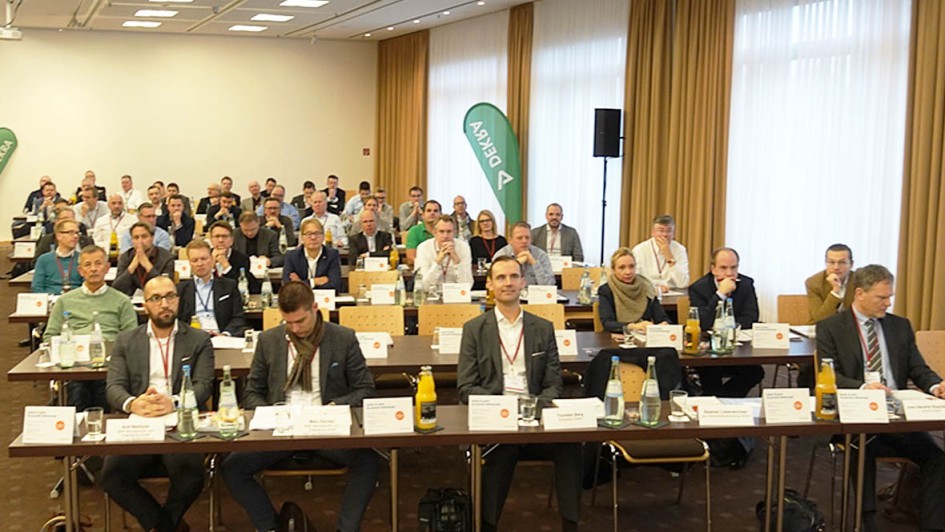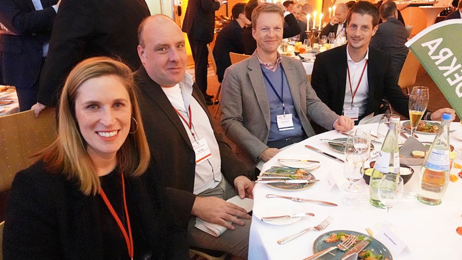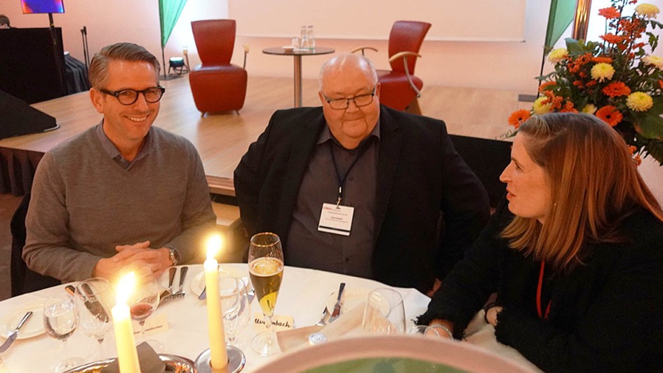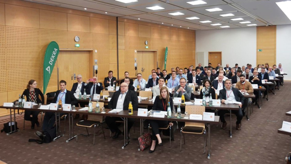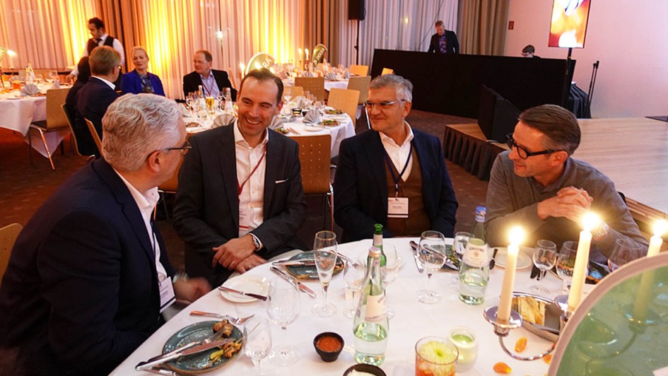 von 32: Michael Tziatzios, GW-Management-Chef von DEKRA, im Gespräch mit Thorsten Berg, Chef von Schwacke, Peter Lindner von Auktion & Markt und Stephan Lützenkirchen.