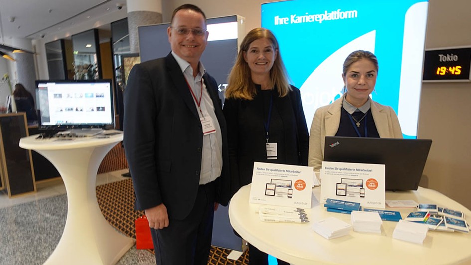 von 32: Den digtialen Stand von AUTOHAUS mit "AUTOHAUS next“ und der AUTOHAUS-Jobbörse www.autojob.de vertraten Jaran Yevgeniya (re), Elisabeth Huber und AUTOHAUS-Dozent Bert Grammel.