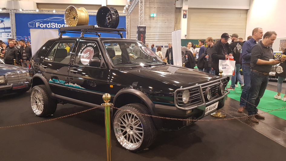 von 12: So ein VW Golf Country war ja schon immer ein kurioser Zeitgenosse. Damals seiner Zeit voraus - die SUV-Welle kam erst später -, hielt sich die Nachfrage nach dem etwas anderen Golf in Grenzen. Heute ist der Country umso begehrter. Auch wenn Alufelgen - wie in diesem Fall - den Auftritt optisch irgendwie nicht besser machen. Da ist einfach zu viel Luft im Radkasten ...