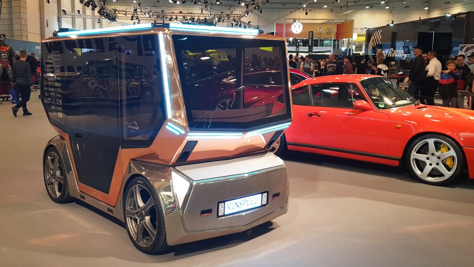 von 12: Zu guter Letzt ein Fahrzeug, das bei der diesjährigen Essen Motor Show auf den ersten Blick so gar nicht in die Tuning-Welt passte. Rinspeed ist vielen Autofans ein Name, stand er einmal für aufregende Porsche-Umbauten. Mittlerweile tüftelt man an elektrischen, autonomen Shuttles wie dem ausgestellten "Microsnap". Ob der auf eine Tuning-Messe gehört, dürfen Sie nun selbst entscheiden.