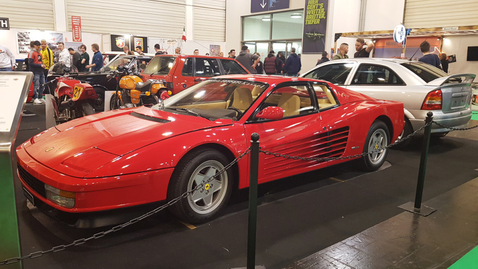 von 12: Vorne ein Ferrari Testarossa, hinten ein Opel Astra - schon ein kurioses Bild. Ein Ferrari F40 hätte wohl den besseren Hintergrund abgegeben. Doch Kenner haben es sofort bemerkt - der Astra mit Hecktheke ist kein gewöhnlicher. Hier stand ein limitierter OPC aus dem Jahr 2000 zum Verkauf. Den Preis für die Nummer 1.782 (insgesamt 3.000 Stück) gab es nur auf Anfrage.