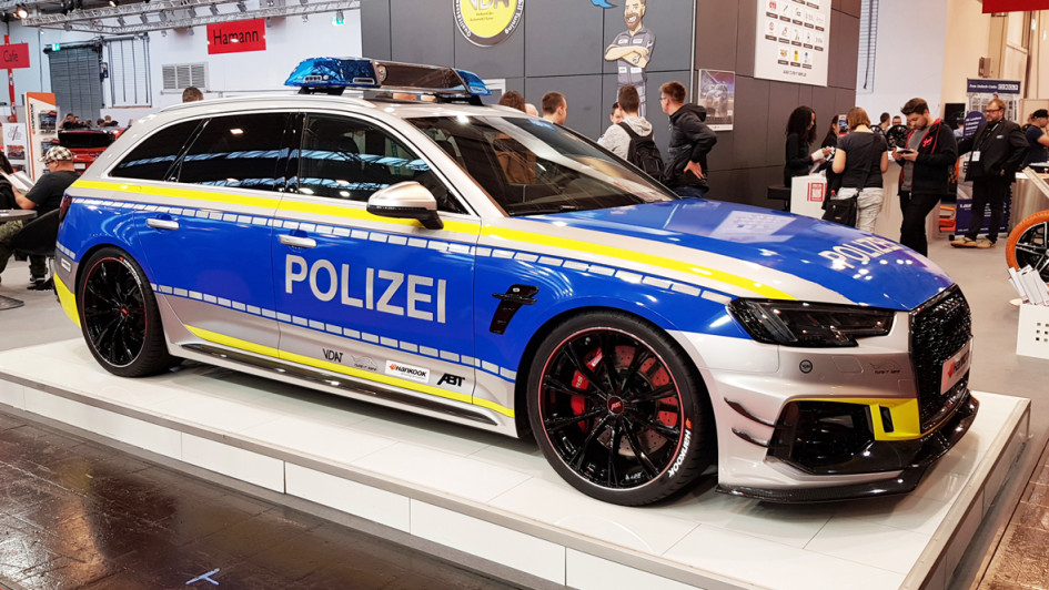 von 12: Polizeikontrollen sind ja nicht gerade die Lieblingsbeschäftigung der Tuning-Freunde. Doch bei diesem Streifenwagen würde sich wohl jeder gerne aus dem Verkehr ziehen lassen. Der schon ab Werk potente Audi RS4 Avant erhielt noch eine Veredelung bei Profi-Tuner Abt. Damit entkommt dem V6-Biturbo mit 530 PS und 690 Newtonmeter Drehmoment so schnell niemand. Das Showcar ist Teil der "Tune it! Safe!"-Kampagne.