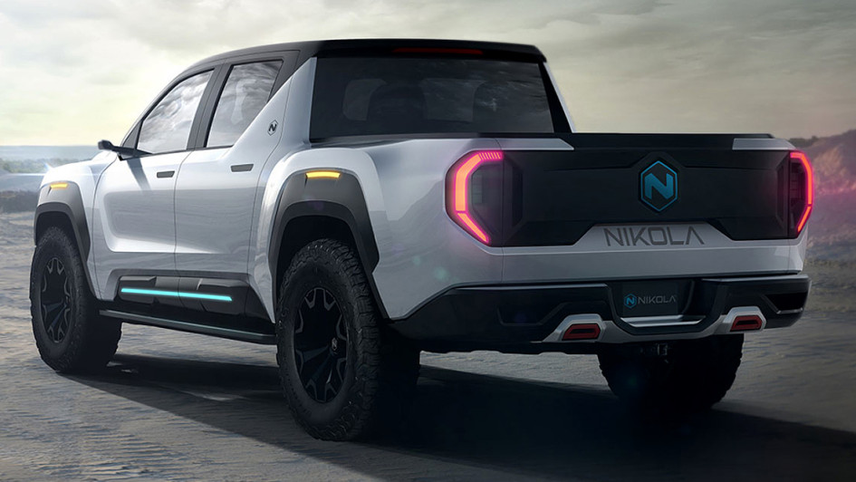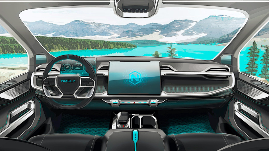 von 6: Den 5,90 Meter langen Fünfsitzer will Nikola mit einer 160 kWh großen Lithium-Ionen-Batterie für fast 500 Kilometer Reichweite bestücken. Optional ist auch eine Kombination mit einer 120-kW-Brennstoffzelle möglich.
