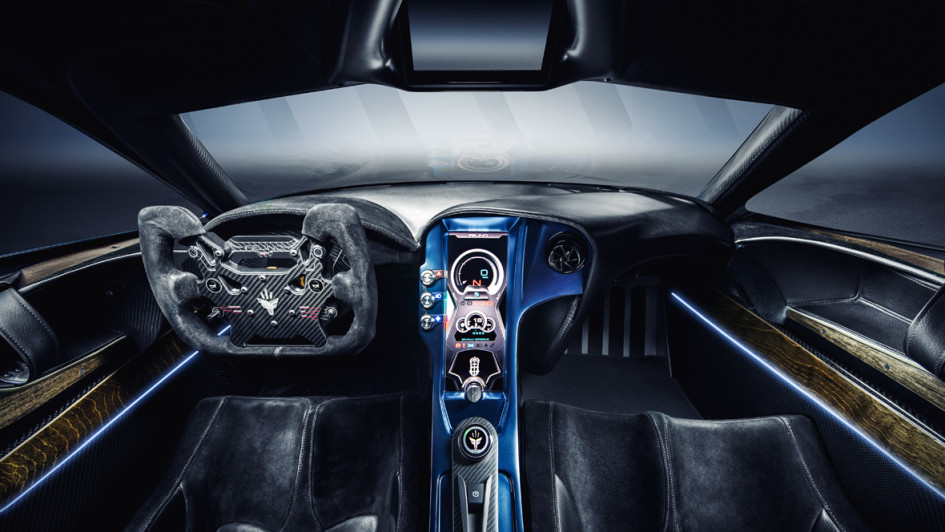 von 7: Der 4,19 Meter kurze Bolide bietet 39 Zentimeter große Bremsscheiben mit Sechs-Kolben-Zangen vorne und ein verstellbares Fahrwerk. Der umgerechnet mindestens 250.000 Euro teure Exot soll auf lediglich 10 Exemplare limitiert werden.