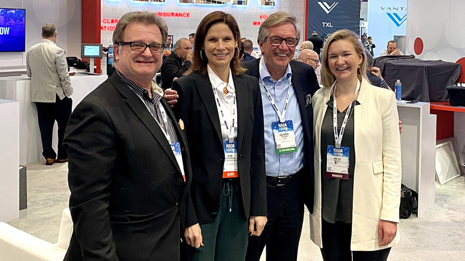 von 20: Der NADA-Stand ist Jahr für Jahr Treff- und Mittelpunkt der Messe. Georg Bauer, Präsident Fair.com (2.v.r.), Eva Kellershof, Senior Director of Strategy Fair.com (3.v.r.), Heidi Bauer, Co-Founder und Chief Strategy Officer otoz mobility (1.v.r.) und Willie Boehler, AUTOHAUS