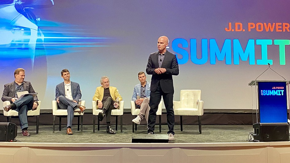 von 20: J.D. Power Summit: die neue Welt der Disruption im Handel. Mike Perugi, Automotive Industry Practice Leader Acxiom (1.v.l.), Jim Bauman, Automotive Partnership Leads Uber, Arian Tarhan, Präsident Convergent Alliance LLC., Shane Dwyer, National Automotive Vertical Lead Snap, Darren Haygood, Chief Revenue Officer Dealer Inspire (stehend).