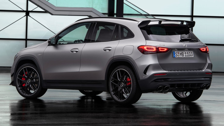 von 8: Der AMG 45-Antrieb wird in zwei Leistungsstufen angeboten: In der stärksten Version "S" leistet das Triebwerk 310 kW/421 PS, in der Standardvariante sind es 285 kW/387 PS. Allrad gehört zum Serienumfang.